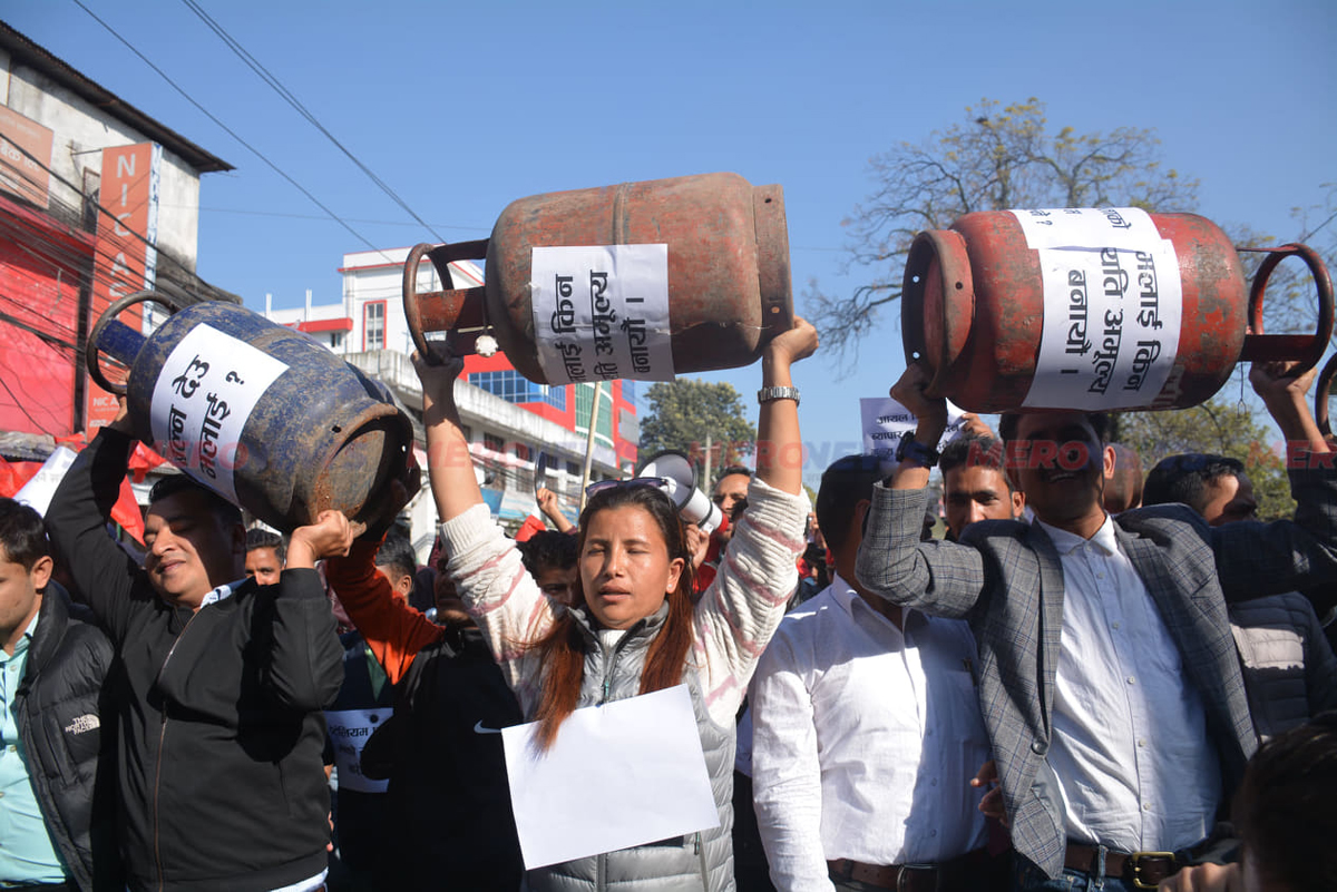 सत्तारुढ दलकै विद्यार्थीहरुले गरे रित्तो सिलिण्डर प्रदर्शन (फोटोफिचर)