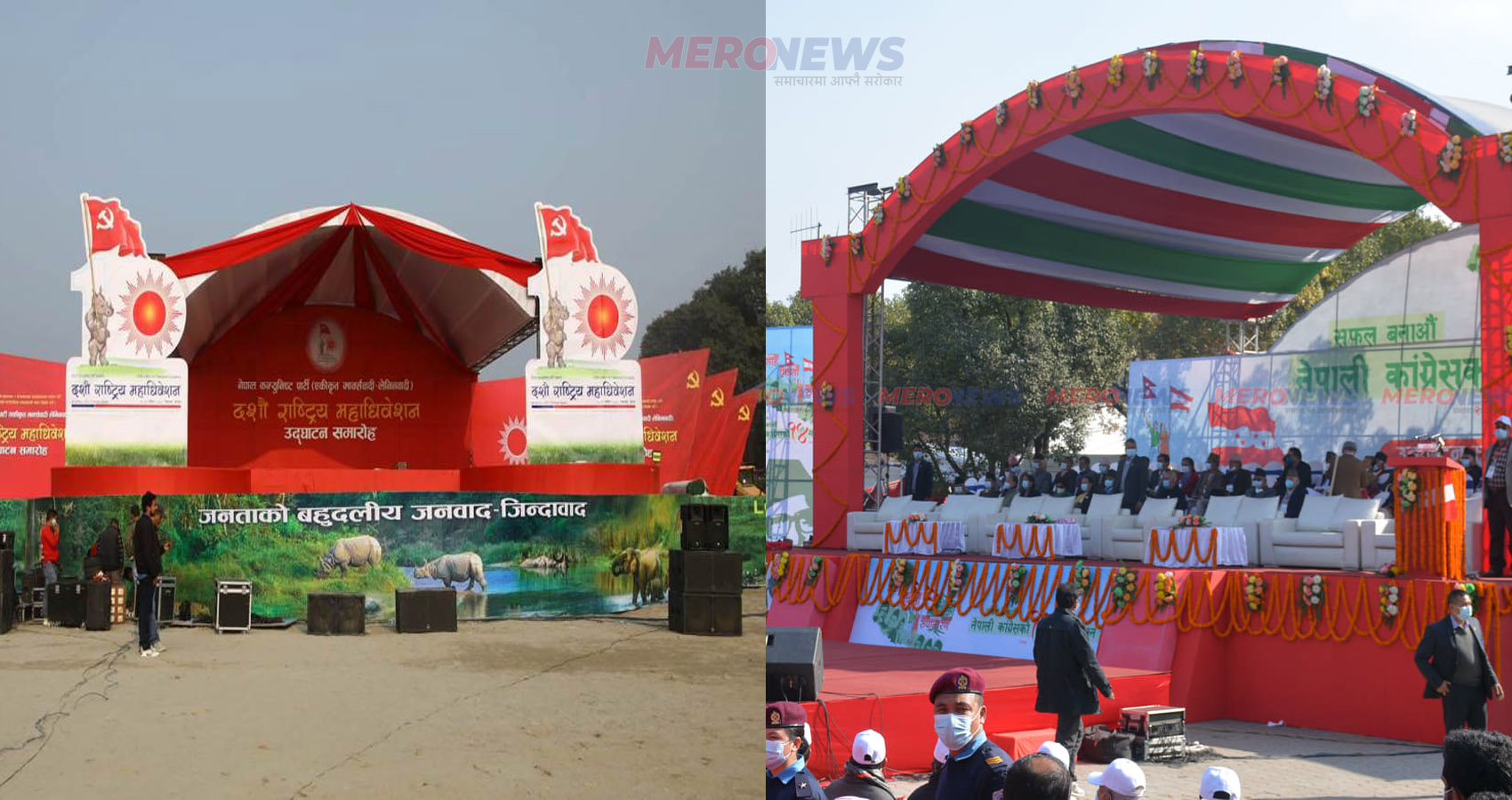 कांग्रेस-एमालेमा कसको महाधिवेशनको मञ्च आकर्षक ?