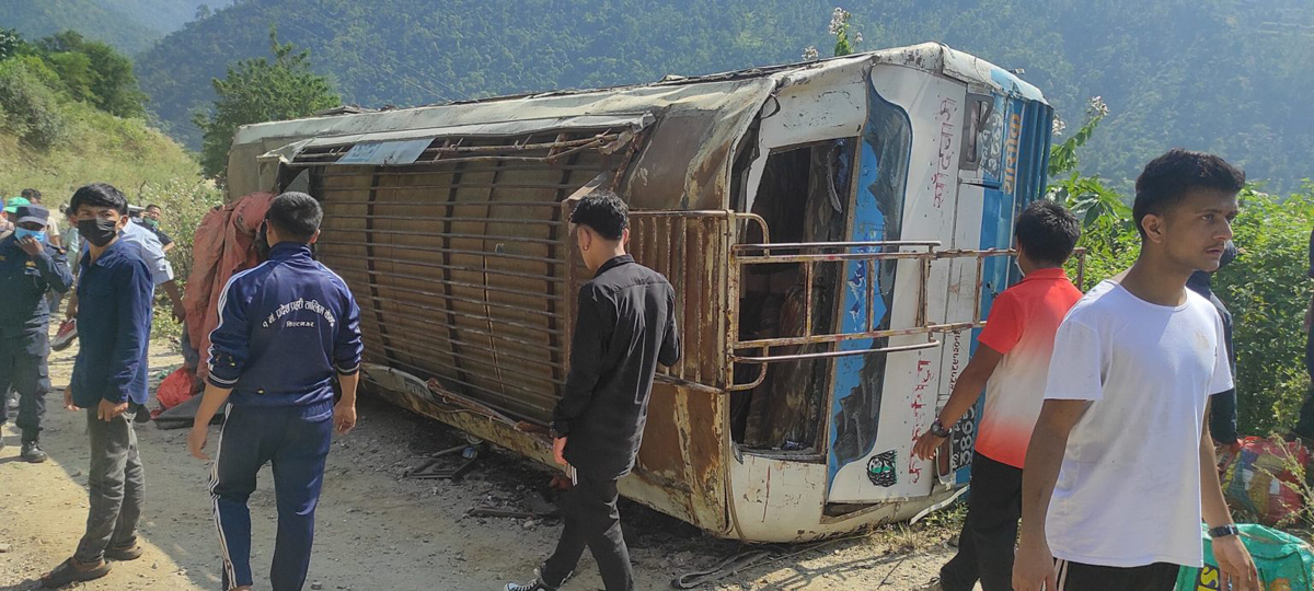 पाँचथरको सरखण्डेमा बस दुर्घटना, दुईको मृत्यु चारको अवस्था गम्भीर