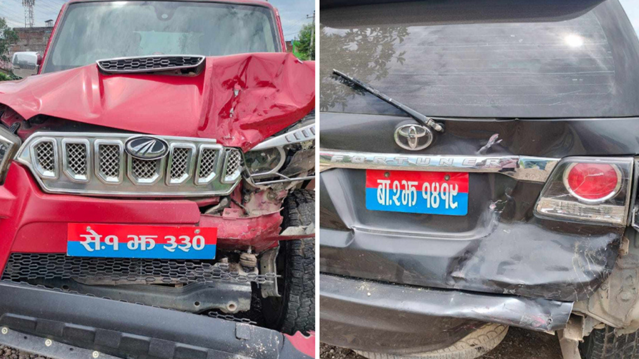 प्रधानमन्त्रीको स्वागतमा हिँडेका दुई प्रदेश मन्त्री सवार गाडी आपसमा ठोक्किए