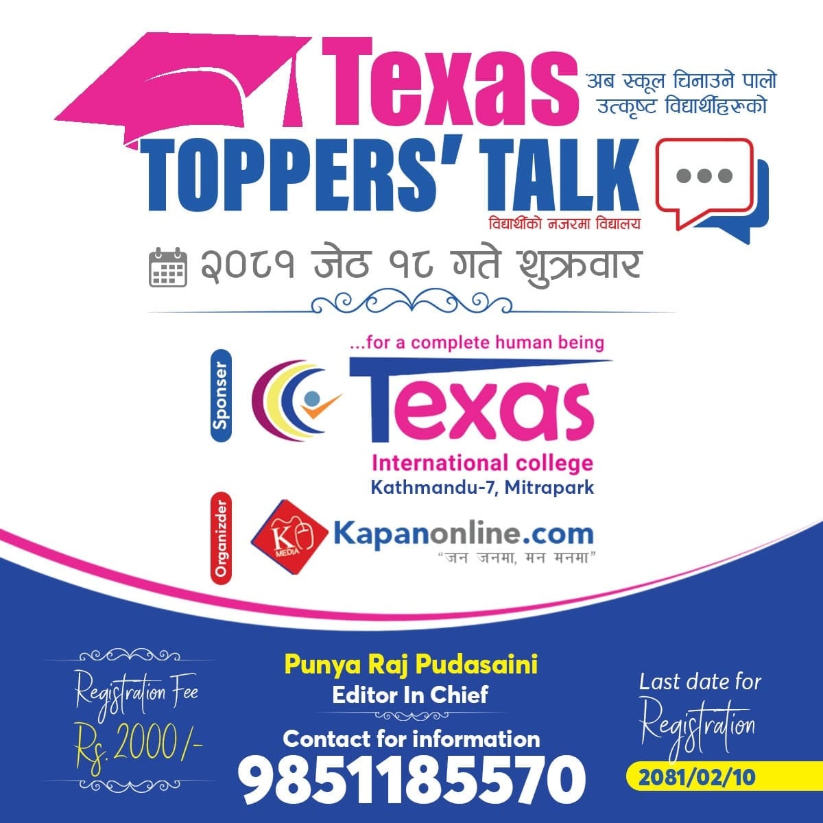 टेक्सास टपर्स टकमा बुढानिलकण्ठका उत्कृस्ट विद्यार्थीले विद्यालय चिनाउने