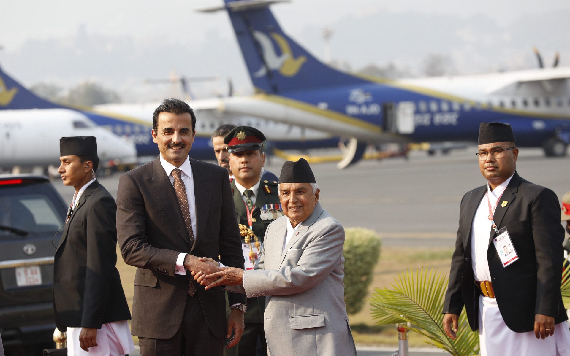 काठमाडौं आइपुगे कतारका राजा (तस्वीरहरु)