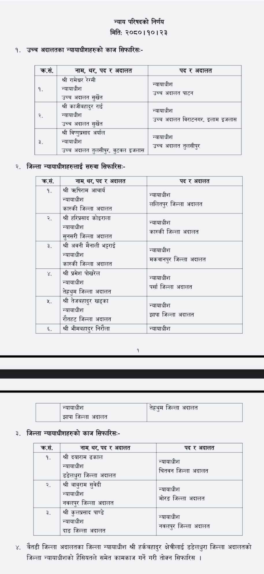 जिल्ला र उच्च अदालतका १२ न्यायाधीशहरूको काज र सरुवा
