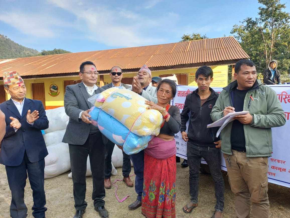 मन्त्री श्रेष्ठद्वारा थामी र हायु जातिलाई फाइवर सिरक वितरण