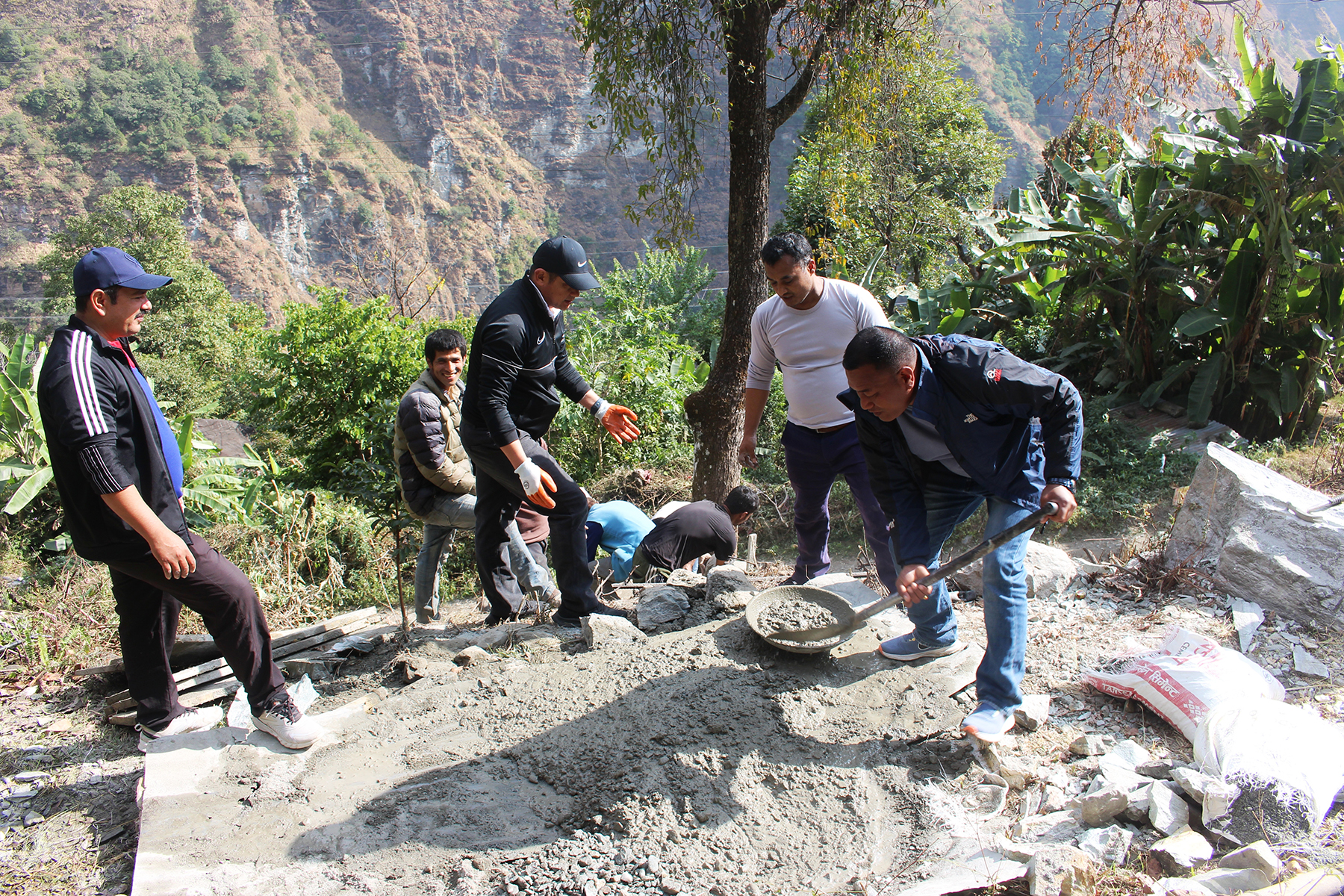 पदमार्ग बनाउने श्रम शिविरमा पुगेर मन्त्री र नेताको हौसला