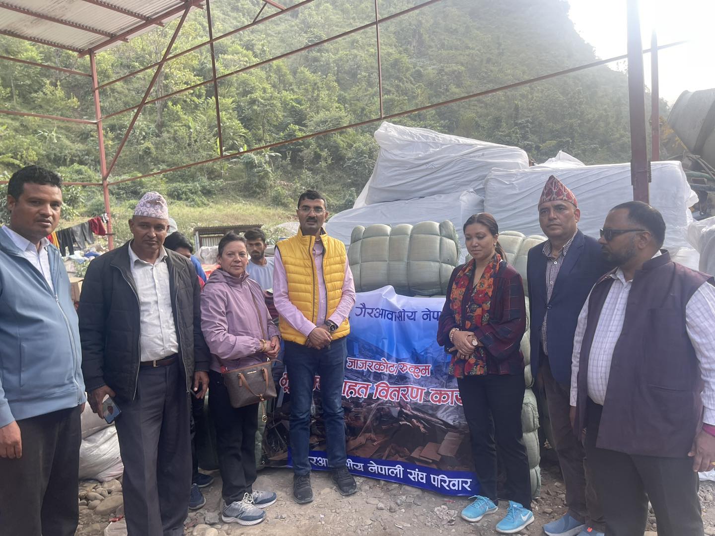 एनआरएनए अध्यक्ष शर्मा नेतृत्वको टोली भुकम्प प्रभावितलाई राहत दिएर फर्कियो