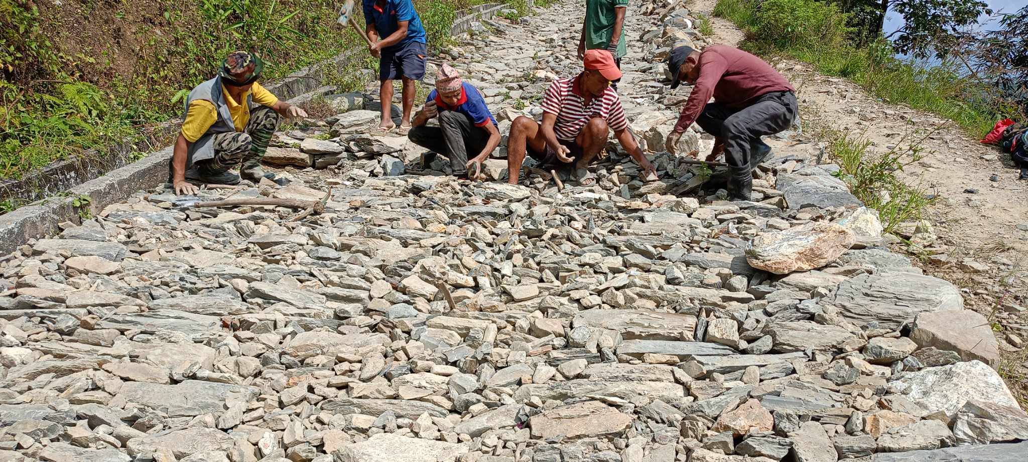 ठेकेदारले अलपत्र पारेको सडक श्रमदान गरेर मर्मत