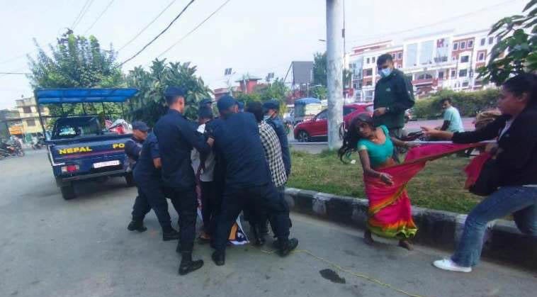 धर्नारत आरती साहका आमाबुवा र भाइलाई प्रहरीले माइतीघरबाट उठायो
