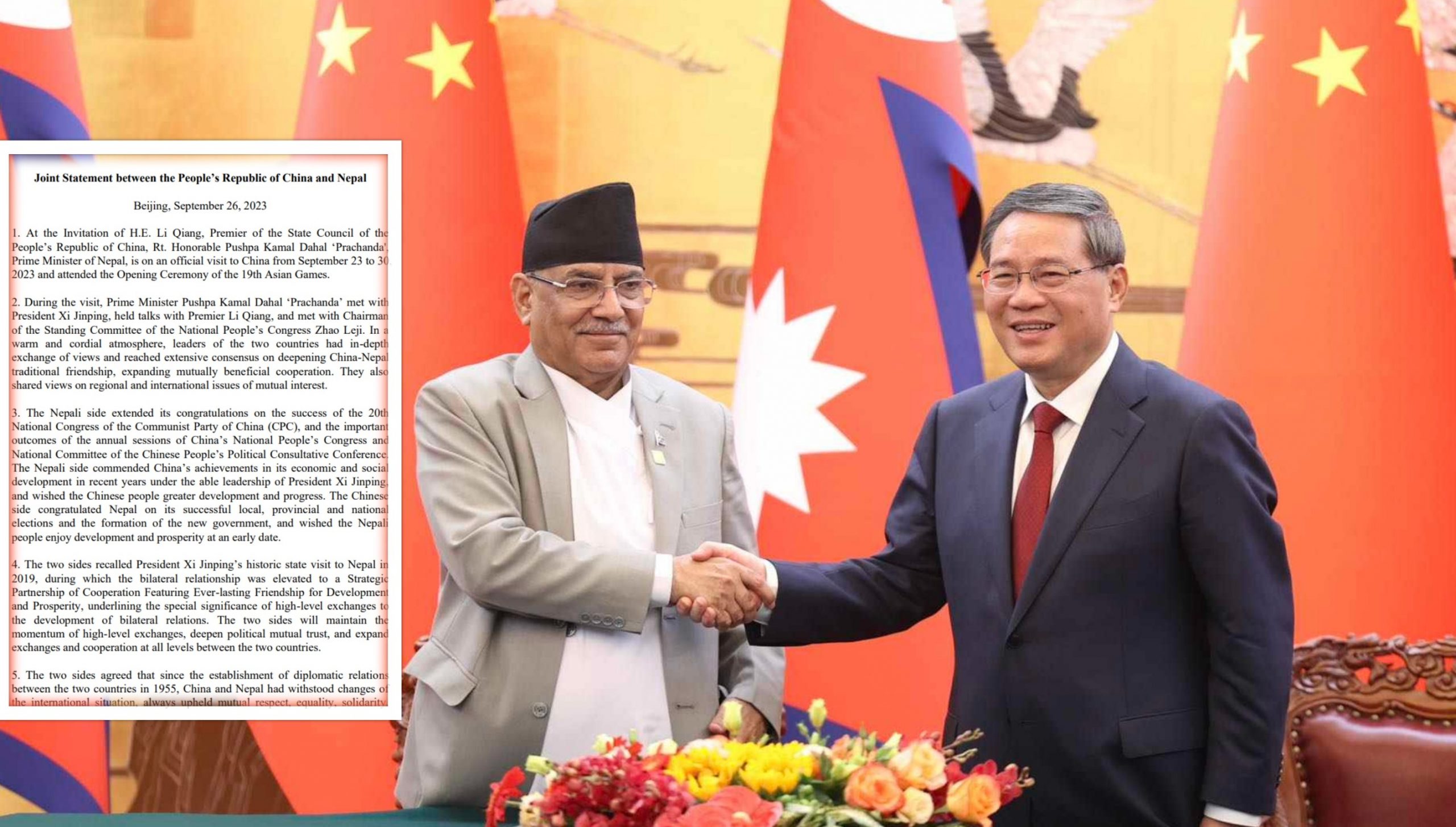 नेपाल र चीनबीच १३ बुँदे संयुक्त बक्तब्य जारी (पूर्णपाठ)