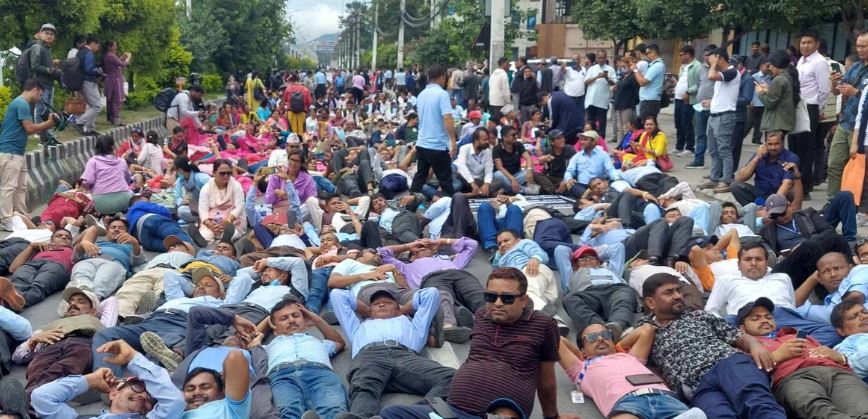 शिक्षककाे ओछ्यान सडकमा