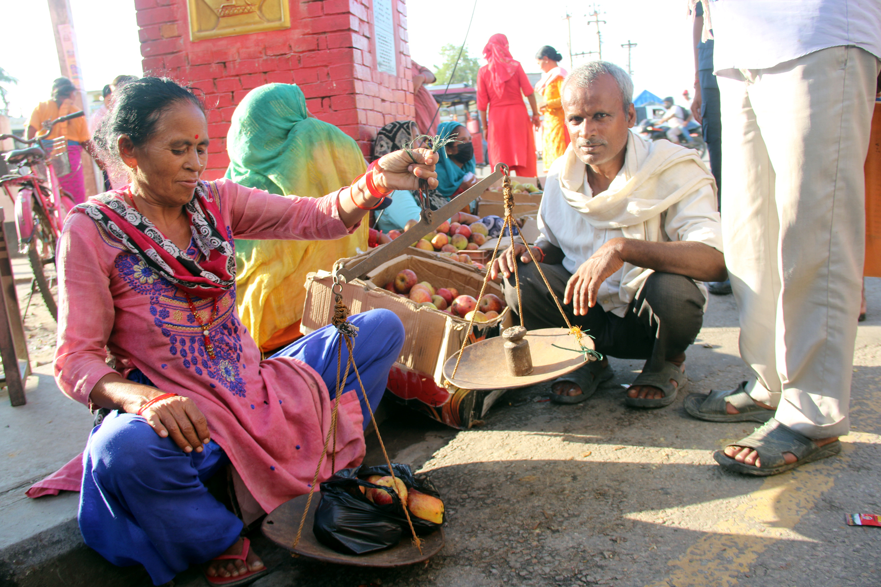 जुम्लाका व्यापारी महिला नेपालगञ्जमा स्याउ बिक्री गर्दै