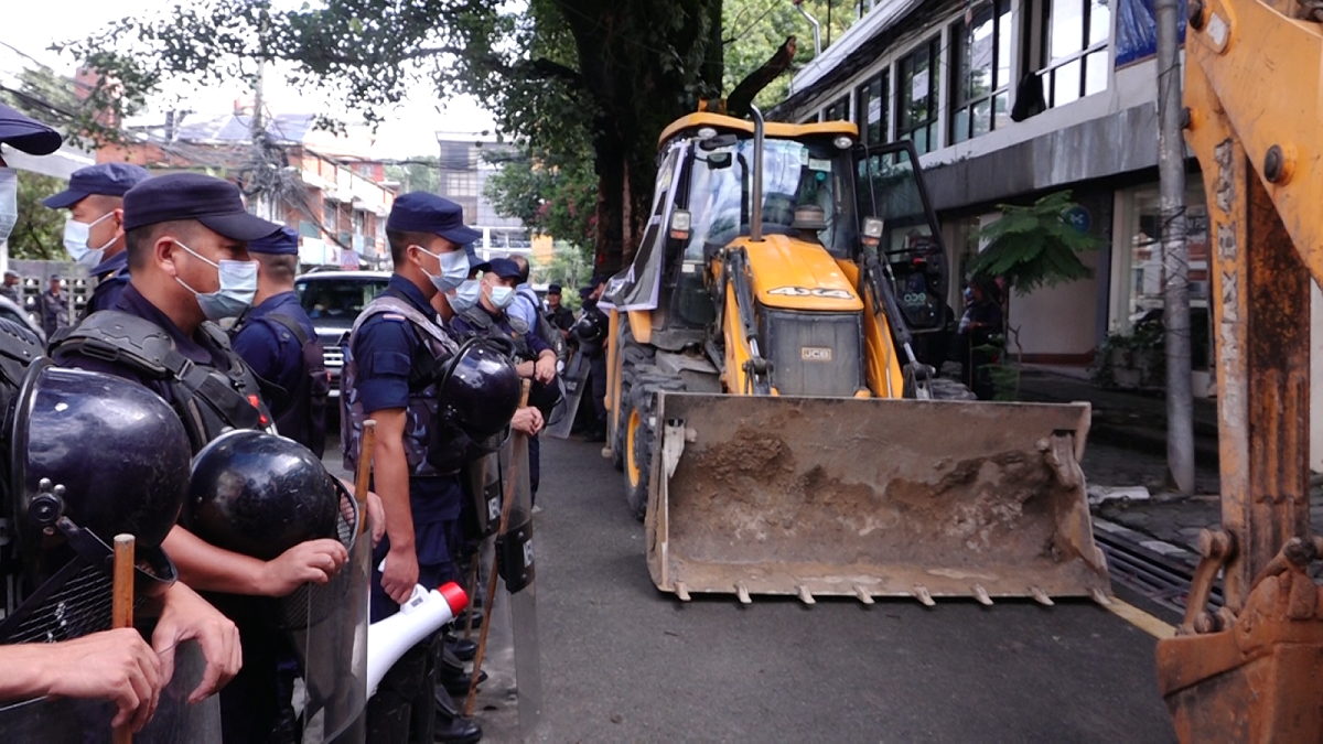 डोजर तेर्स्याएर प्रधानमन्त्री निवासअगाडि निर्माण व्यवसायीको विरोध प्रदर्शन