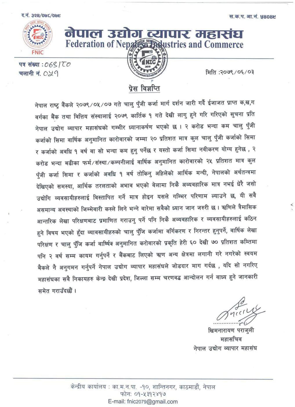 राष्ट्र बैंकको निर्देशन सच्याउन नेपाल उद्योग व्यापार महासङ्घ माग