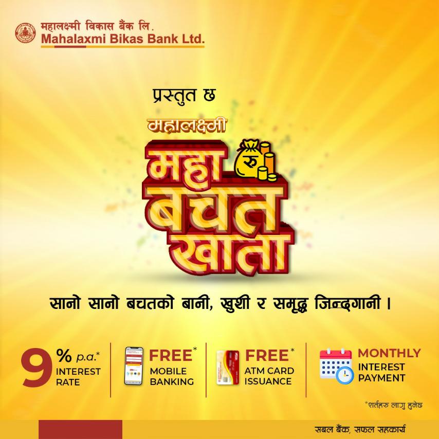 महालक्ष्मी विकास बैंकद्वारा उच्चतम व्याजदरको महा बचत खाता सार्वजनिक