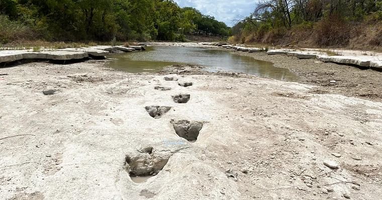 नदी सुकेपछि करोडौँ वर्ष पुरानो डायनोसरका खुट्टाका छाप फेला