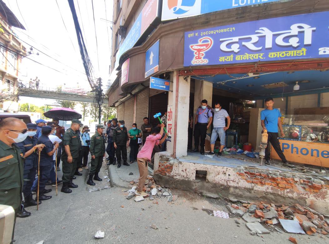 ‘अण्डर ग्राउण्ड’ पार्किङ दुरुपयोग रोक्न भत्काउँदै (फोटो फिचर)