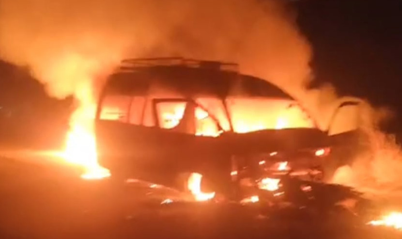 माइक्रो र मोटरसाइकल ठोकिँदा आगलागी, ५ जना घाइते