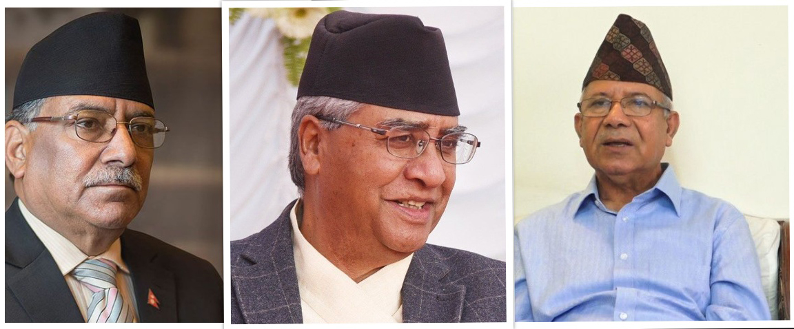 प्रधानमन्त्री देउवा, प्रचण्ड र नेपालबीच बालुवाटारमा भेट वार्ता