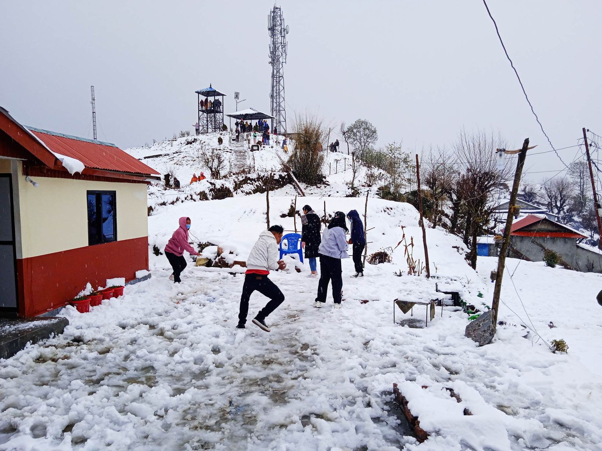 घले गाउँमा हिउँ खेल्न पर्यटकको भिड