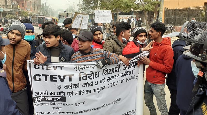 बैकल्पिक परीक्षाको माग गर्दै सीटीईभिटीविरुद्ध प्रदर्शन