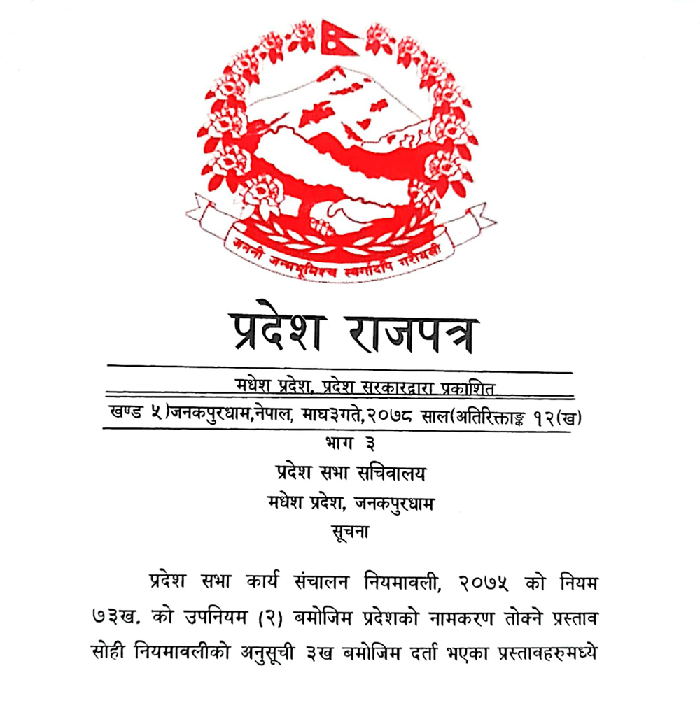 मधेस प्रदेशले ‘चुच्चे नक्सा’ हालेर राजपत्र सच्चायो