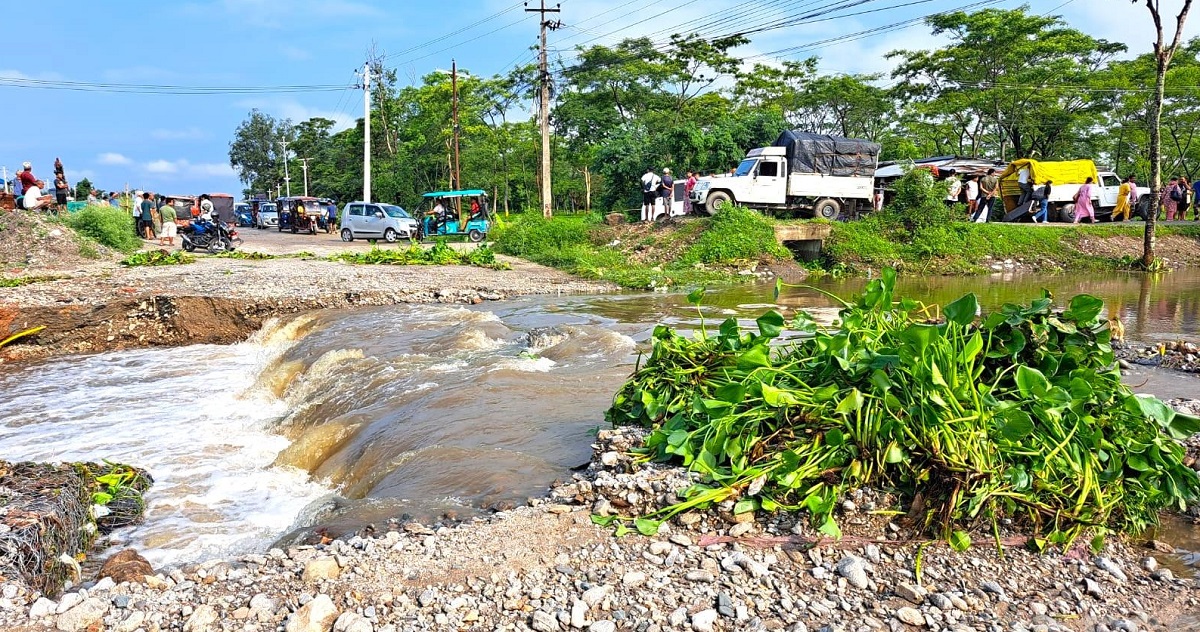 बाढीले डाइभर्सन बगाउँदा पूर्व–पश्चिम लोकमार्ग अवरुद्ध