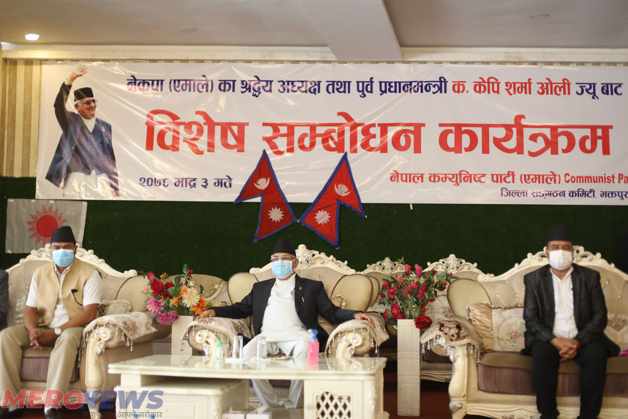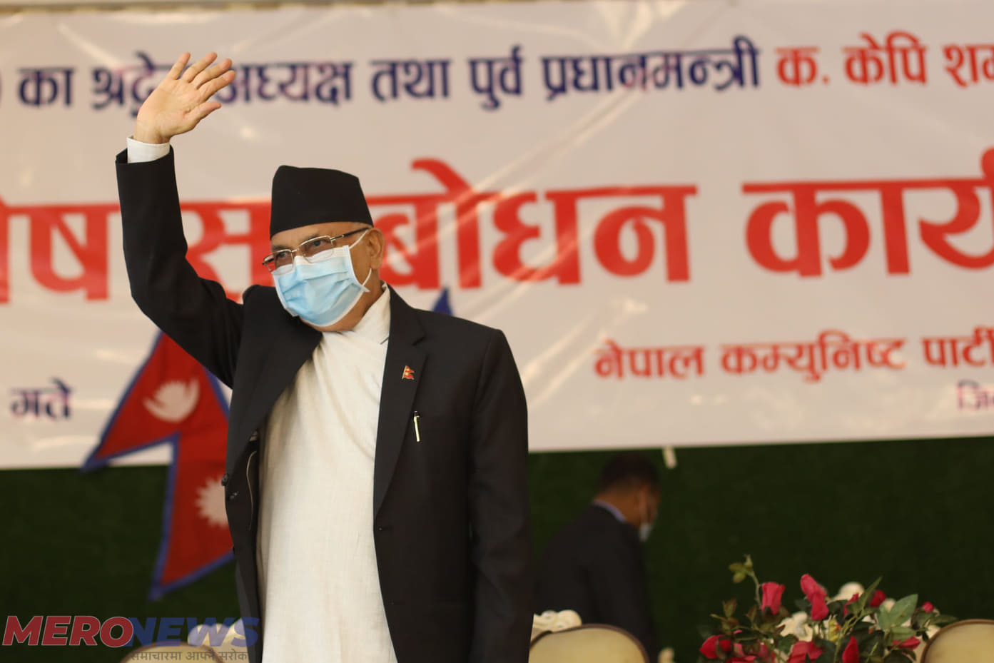 एमाले विभाजनपछि अध्यक्ष ओलीको पहिलो सम्बोधन गदै (तस्बिरमा)