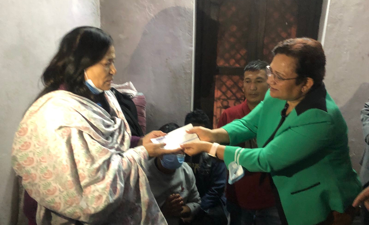 अग्निपीडित परिवारलाई ऊर्जामन्त्री भुसालले गरिन् आर्थिक सहयोग