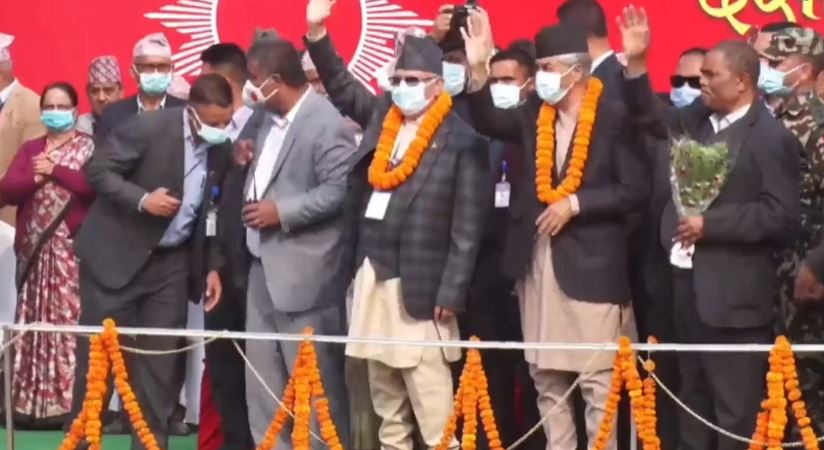 एमाले महाधिवेशनमा एकसाथ पुगे प्रधानमन्त्री देउवा र केपी ओली