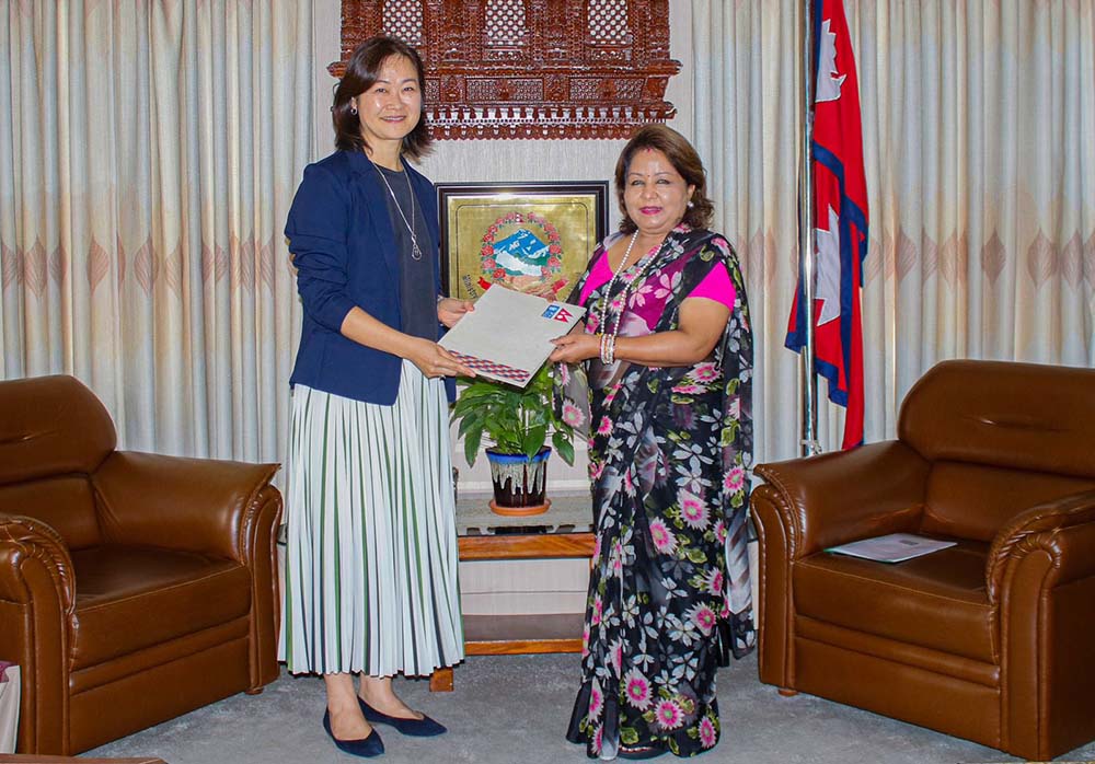 परराष्ट्रमन्त्री राणासँग राष्ट्रसंघकी नेपाल प्रतिनिधि योकोसुकाद्वारा ओहोदाको प्रमाण पत्र पेश