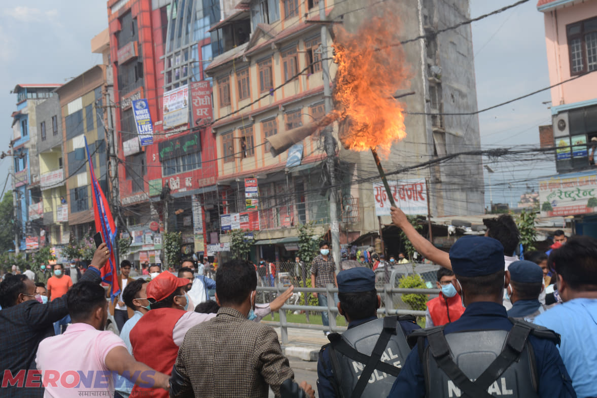 युवा संघले गरे आफ्नै नेताको पुत्ला दहन, घर घेराउ रोक्न सुरक्षामा कडाई (तस्वीरहरू)