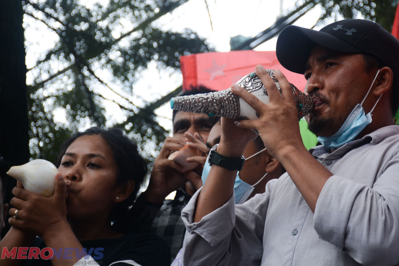 इन्धनको मूल्य वृद्धिमा शंख फुकेर विरोध (तस्वीरहरू)