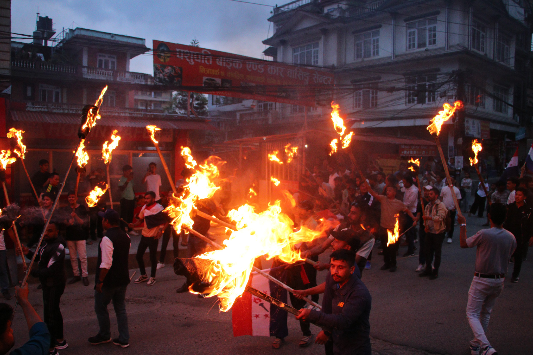 तरुण दलद्वारा प्रचण्ड, ओली र रविको पुत्ला दहन