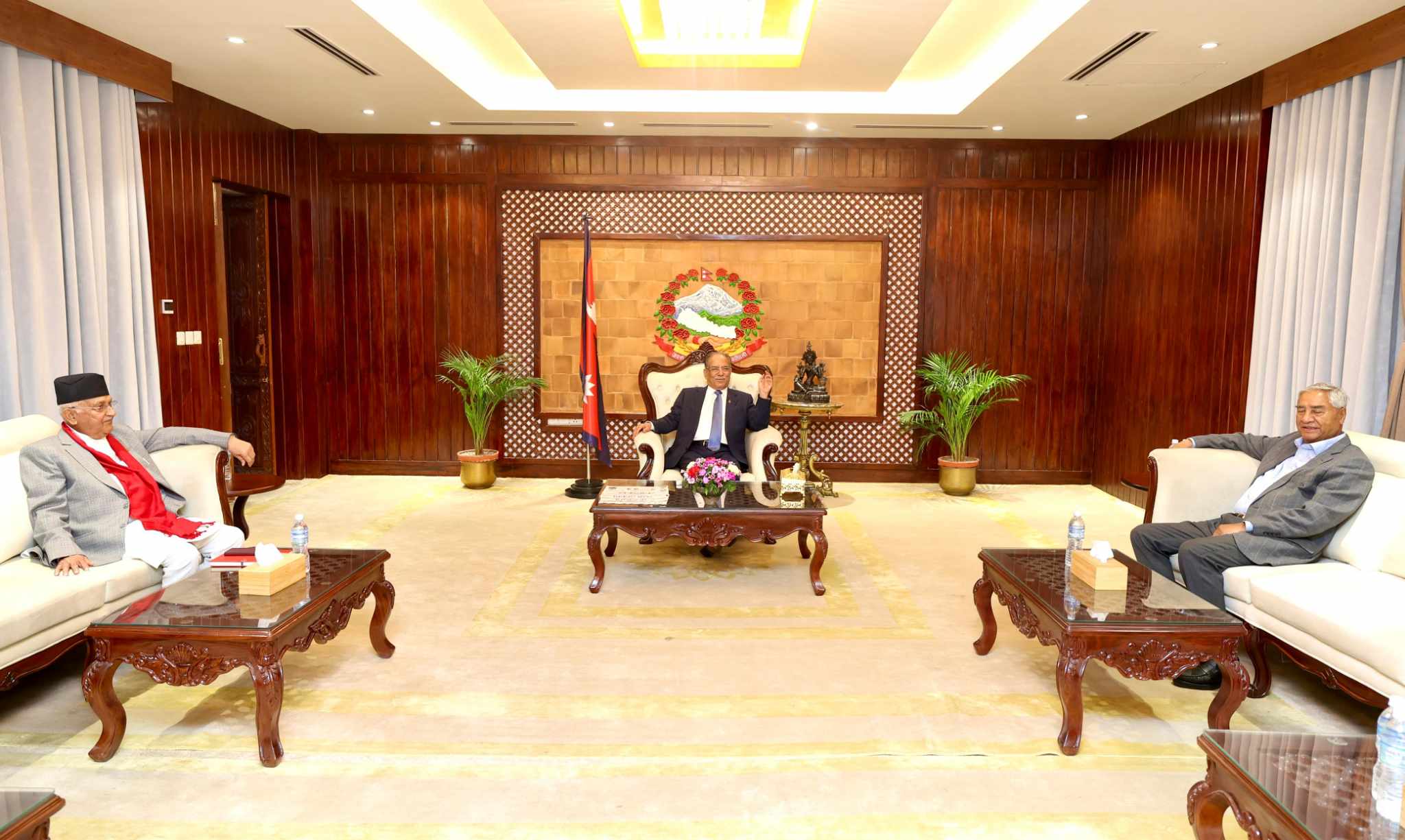 बालुवाटारमा प्रचण्ड, देउवा र ओलीबीच भेटवार्ता
