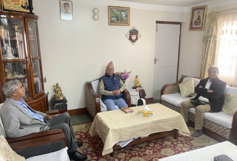 माधव नेपालको निवासमा पुगे प्रचण्ड र ओली