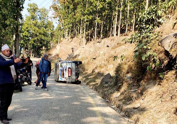 एमाले महासचिव शंकर पोखरेल चढेको गाडी पल्टियो