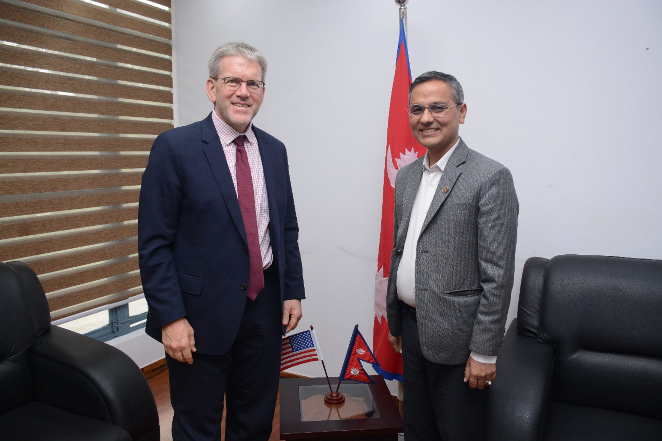 गृहमन्त्रीसँग र अमेरिकी राजदूतको शिष्टाचार भेट