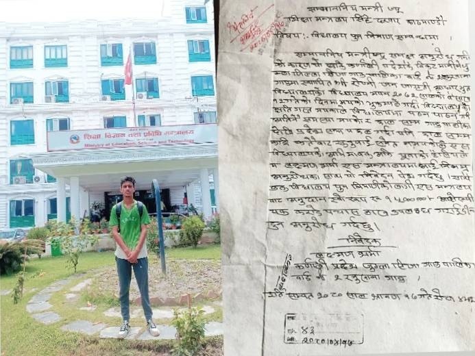 विद्यालयकाे भ्रष्टाचार राेक्न माग गर्दै लक्ष्मण पुगे मन्त्रालय
