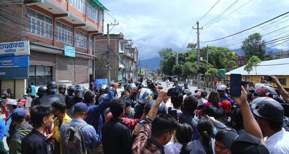 अधिवक्ता पाण्डेलाई कारबाहीको माग गर्दै काठमाडौं प्रहरी परिसर घेराउ