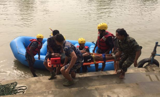 सुरक्षाकर्मीद्वारा सुनकोशी नदीमा उद्धारको पूर्वाभ्यास