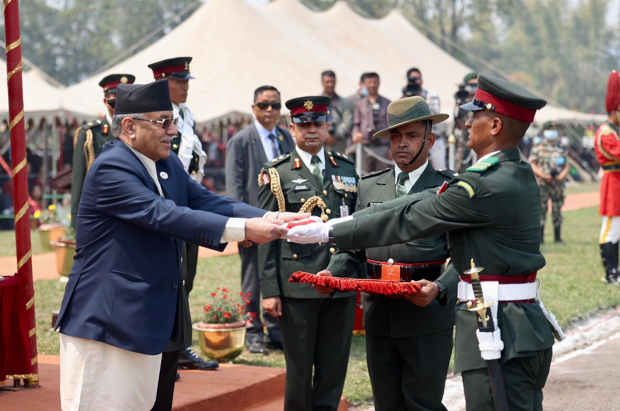 भक्तपुरको सैनिक तालिम केन्द्रमा प्रधानमन्त्री (तस्बिरहरू)
