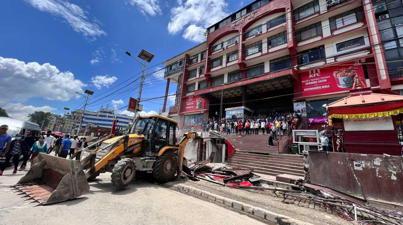 काठमाडौं मल अगाडि रहेका अवैध संरचना भत्काउन सुरु