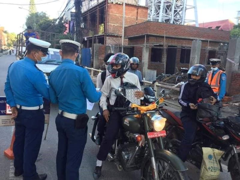 ट्राफिक प्रहरीको कारबाहीमा परे कलेजका ५१ विद्यार्थी