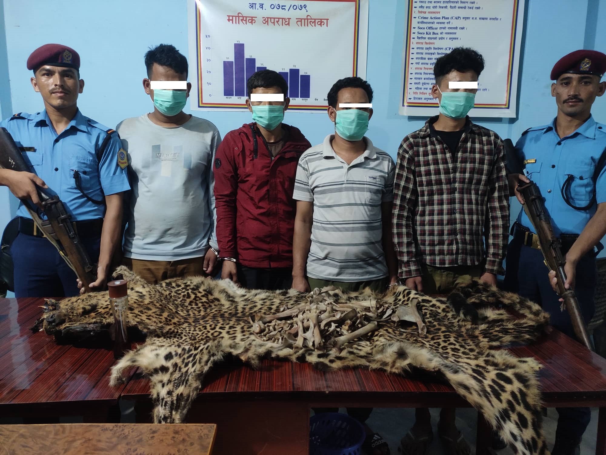 बाघको छाला र हड्डीसहित ४ जना पक्राउ