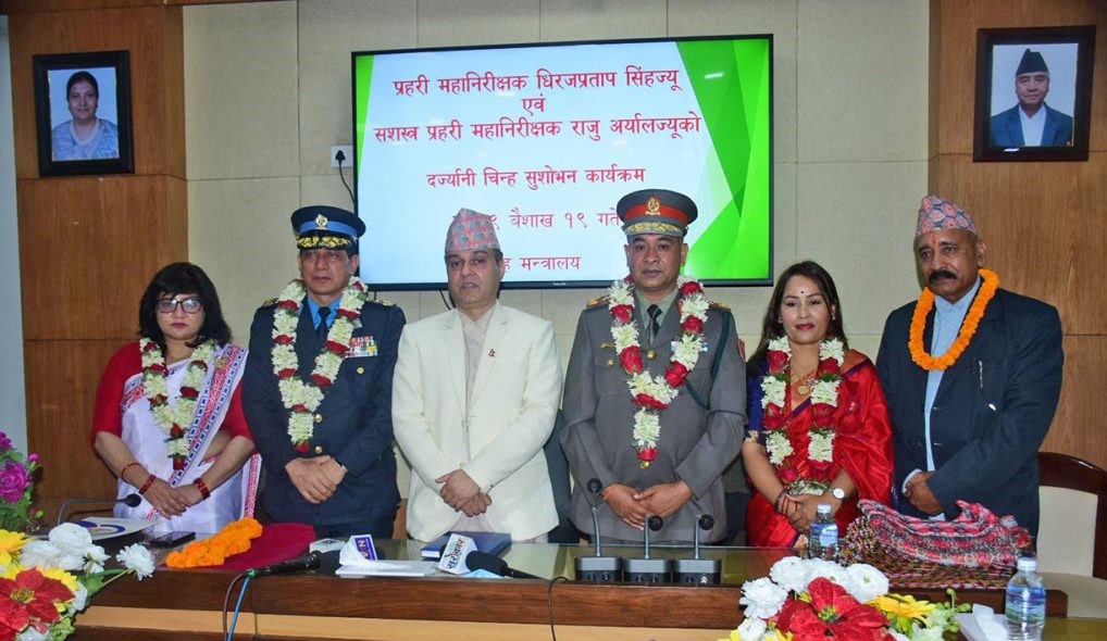 सशस्त्र र नेपाल प्रहरीका नवनियुक्त आईजीपीले लगाए दर्ज्यानी चिह्न