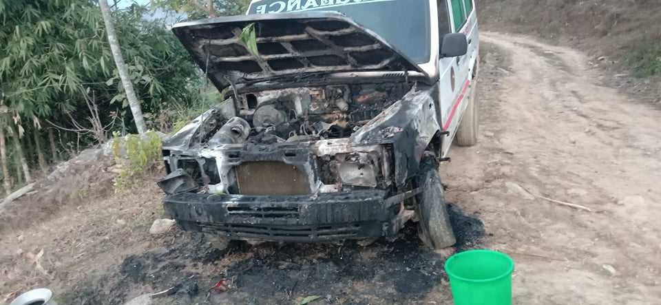 गुल्मीमा एम्बुलेन्समा आगजनी