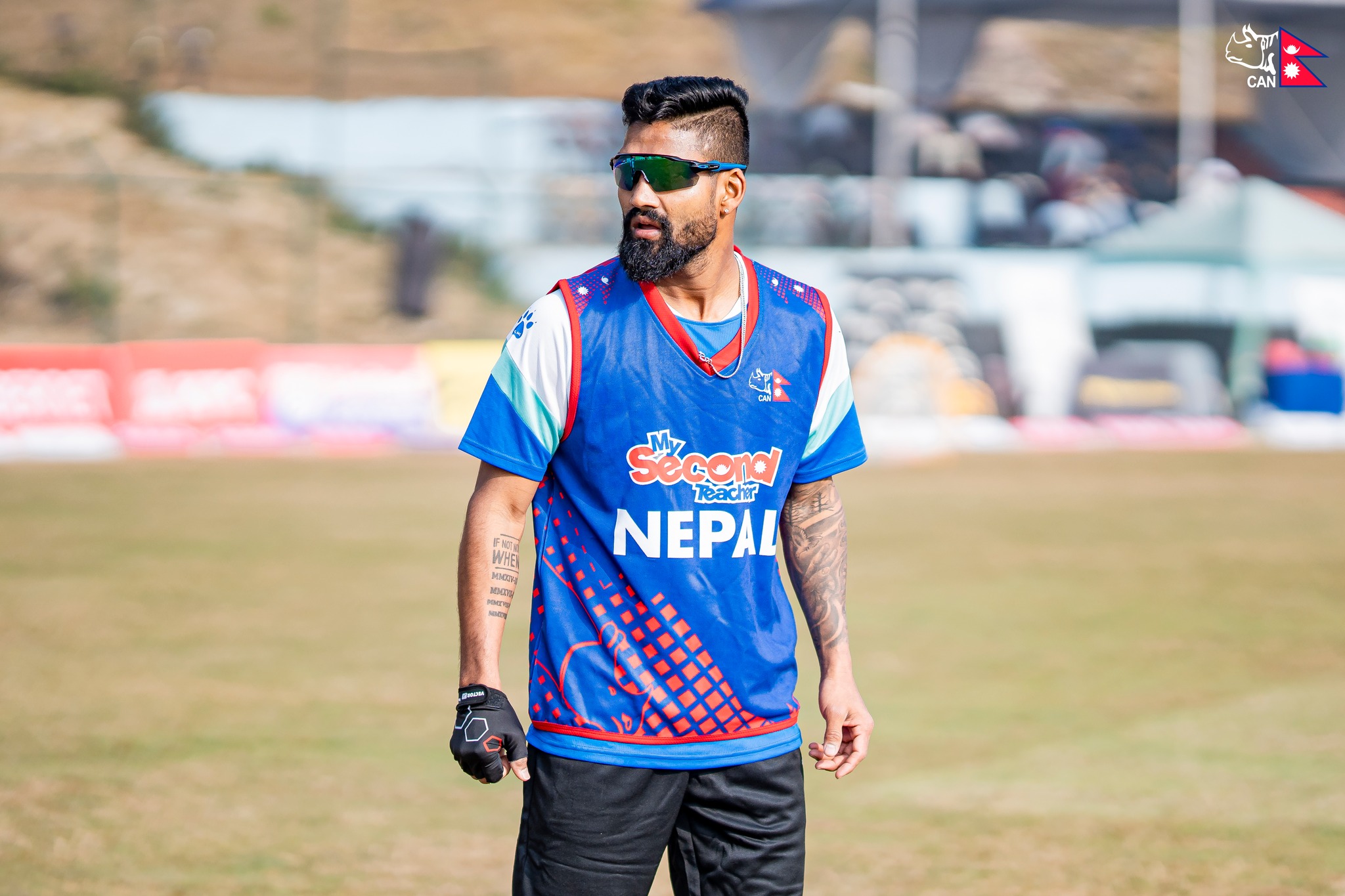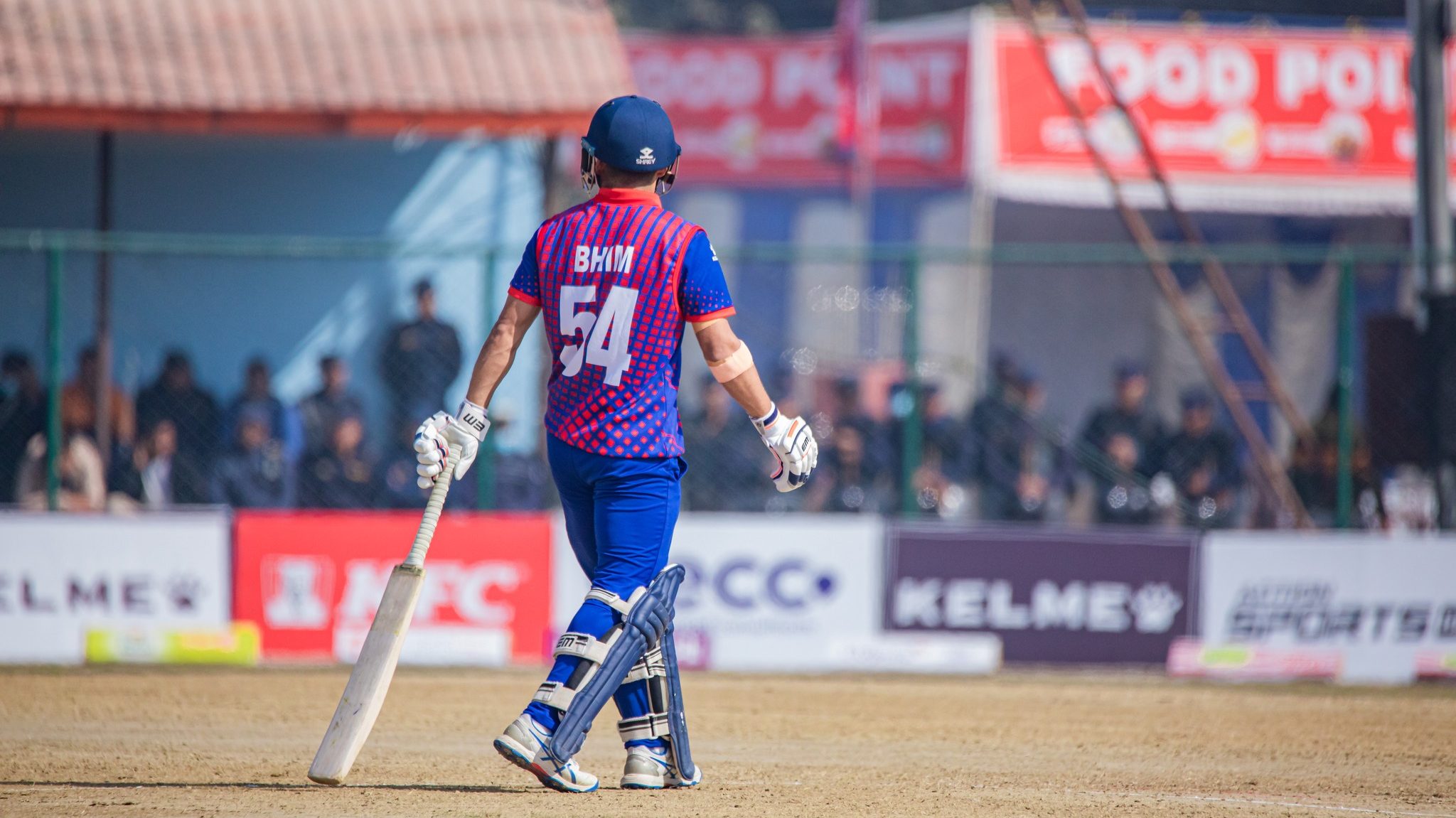 नेपालले गुमायो छैटौं विकेट, भीम शार्की शून्य रनमै आउट