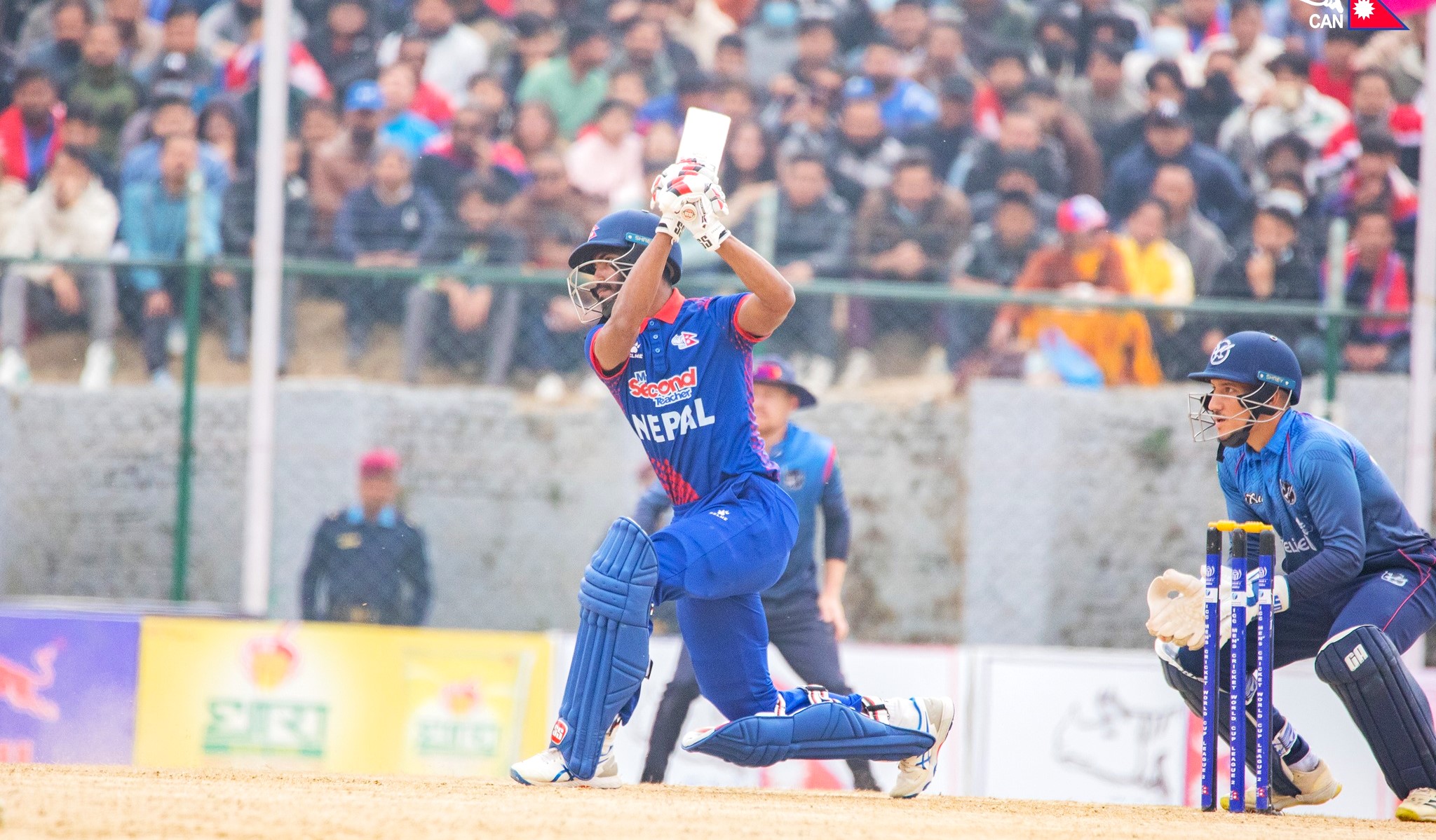 नेपालले पाँचाै विकेट गुमायो, कप्तान रोहित आउट