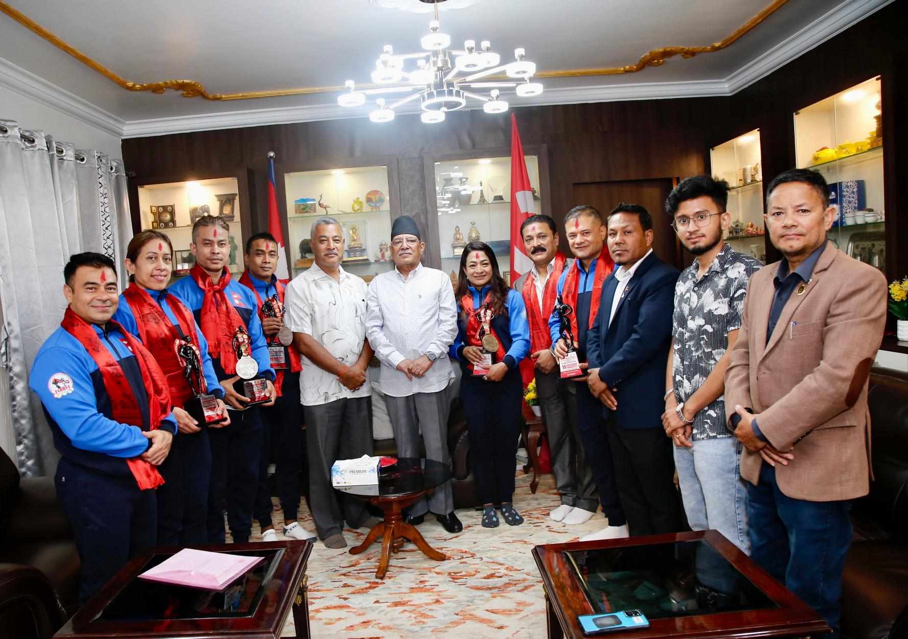 अध्यक्ष प्रचण्डद्वारा दक्षिण एशीयाली शारिरिक सुगठन प्रतियोगिता विजेता खेलाडीहरूलाई बधाई