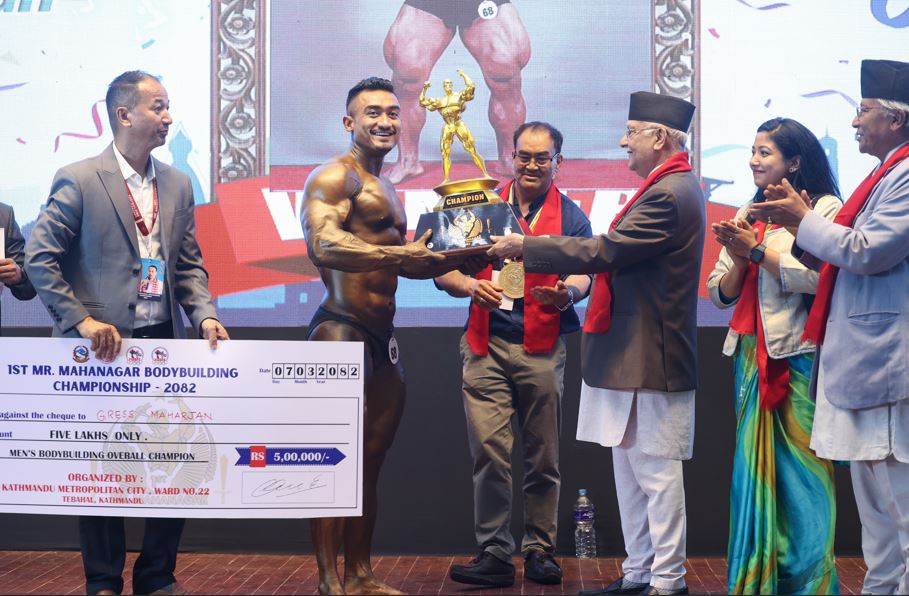 शारीरिक सुगठन प्रतियोगिताका विजेता प्रधानमन्त्रीबाट पुरस्कृत